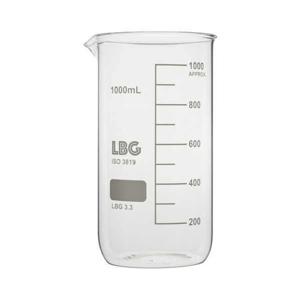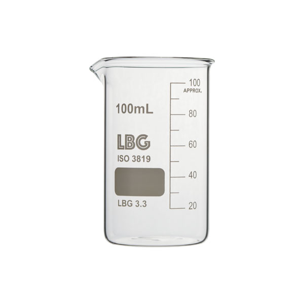 Graduiert und mit Ausguss. Aus Borosilikatglas LBG 3.3. Gemäß DIN 12331, ISO 3819.