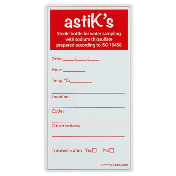 Flaschen ohne Graduierung, Flasche aus PET, Hals Ø 38,5 mm, für ein einfaches Befüllen, quadratische Form zur Platzoptimierung beim Lagern und Transport. Sterilisiert durch Ethylenoxid und verpackt in Einzelverpackungen aus Polyethylen: Die Sterilität bleibt garantiert, solange die Verpackung intakt ist. Verfügbar mit vordosiertem Natriumthiosulfat (20 mg/L) gemäß ISO 19458. Sterilisationszertifikat verfügbar (kostenloser Download hier).