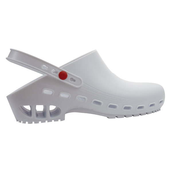 Aus antistatischem SEBS (Styrol-Ethylen-Butylen-Styrol), anatomisch geformt, mitrutschfester, zertifizierter Sohle. Mit Öffnungen an den Seiten zur besseren Belüftung. Zu 100 % recycelbar. Die Artikel LACL-ST1-002 und LACL-ST2-002 ermöglichen die Befestigung des Schuhs am Knöchel für mehr Komfort und Sicherheit. Gemäß der Norm EN ISO 20347:2012. Autoklavierbar bei 134° C.