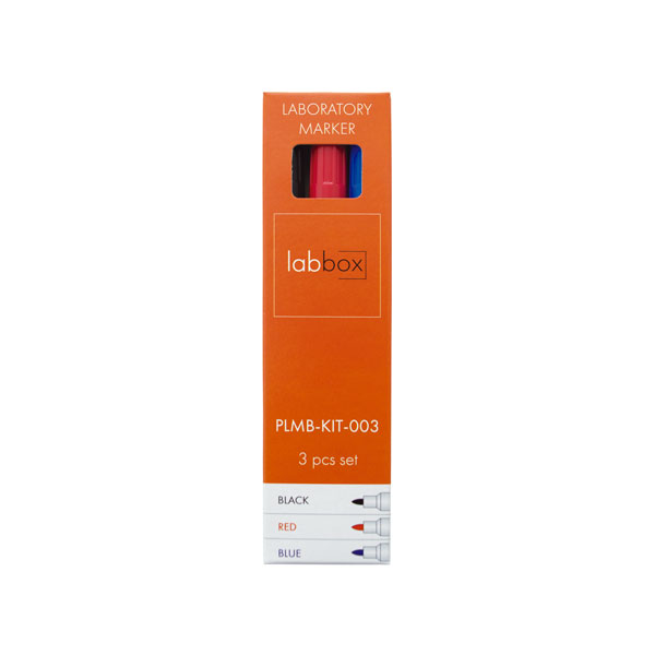 Für die besonderen Anforderungen im Labor. Set mit drei Markern in drei verschiedenen Farben: schwarz, blau und rot. Runde Spitze. Speziell entworfen für Oberflächen von Laborgeräten wie Objektträger, Glasbehälter, Laborinstrumente und Etiketten. Tinte mit hoher Beständigkeit gegenüber Alkohol (nur durch starke Reibung entfernbar) und Wasser, jedoch löschbar mit Aceton und Xylen.