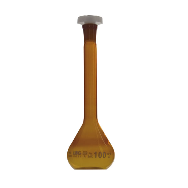 Mit PE-Stopfen und aus Borosilikatglas LBG 3.3. Braunglas. Entworfen gemäß ISO-Norm 1042, DIN 12664 und justiert auf Einguss (TC, In). Chargenzertifikat verfügbar (kostenloser Download hier).