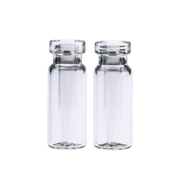 Transparentes Borosilikatglas USP Typ I. Integrierte Einsätze. Erhältlich mit verschiedenen Kappenöffnungen; Gewinde 9 – 425, Snap-Top und einkapselbar (Bördelrand).
