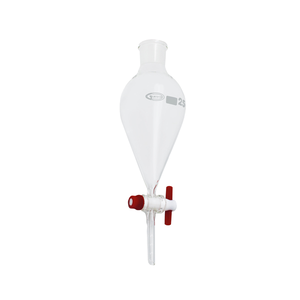 SCHEIDETRICHTER, BIRNENFÖRMIG, MIT PTFE-KÜKEN, GLASSCO